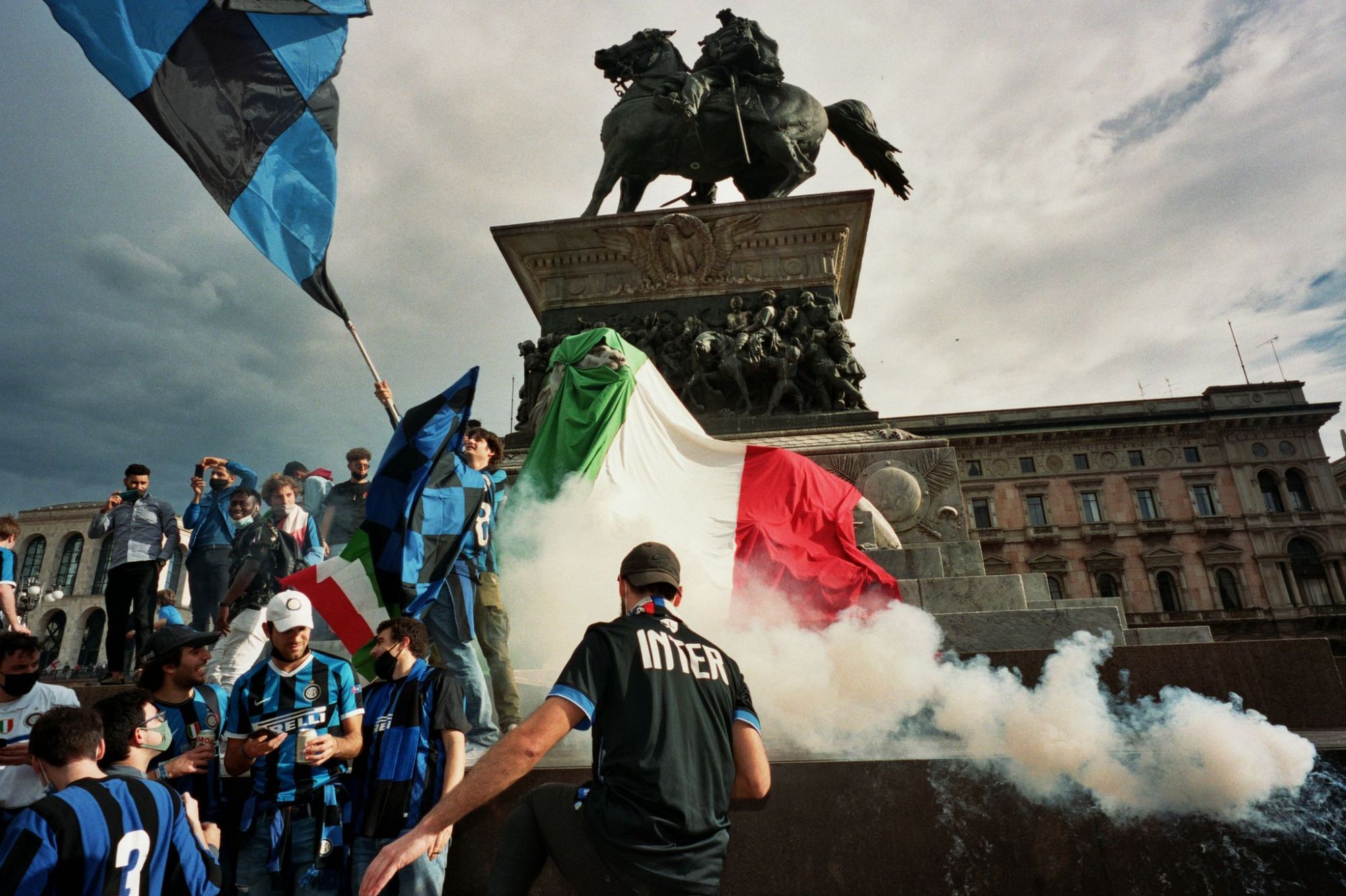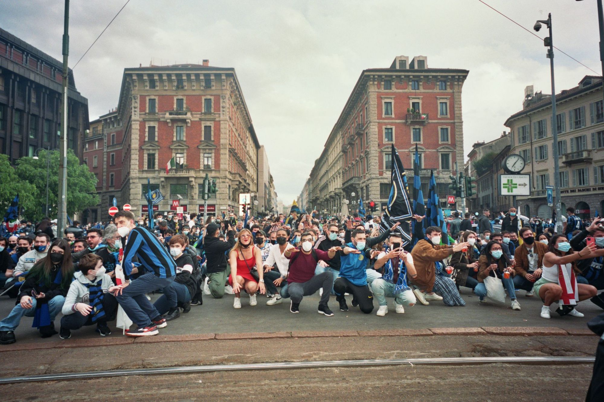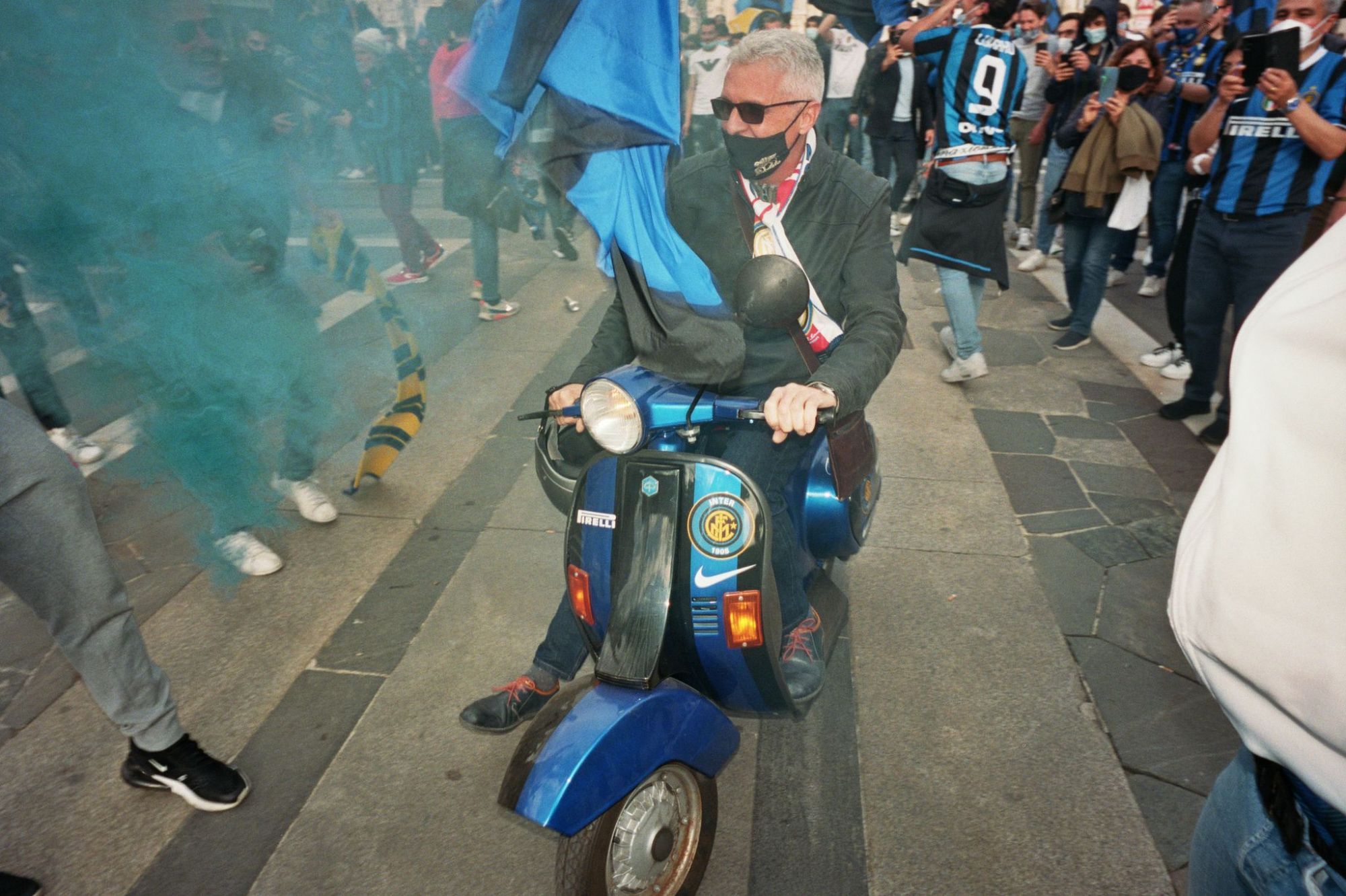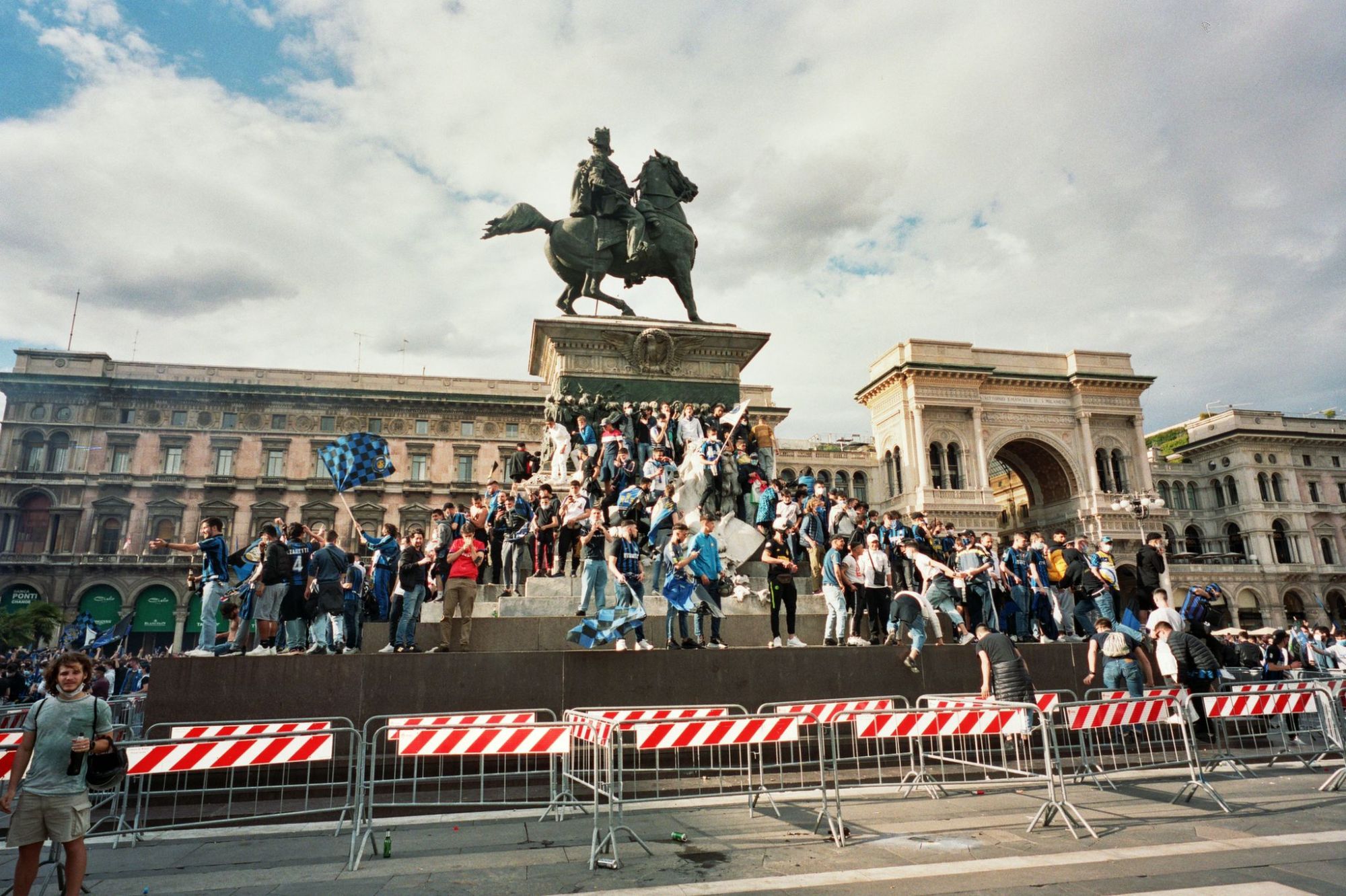 La sua è un'estetica analogica che richiama l'ironia di Martin Parr ma ambientata tra Lissone, San Siro e Stazione Centrale: questo è il suo reportage dalla festa scudetto dell'Inter.