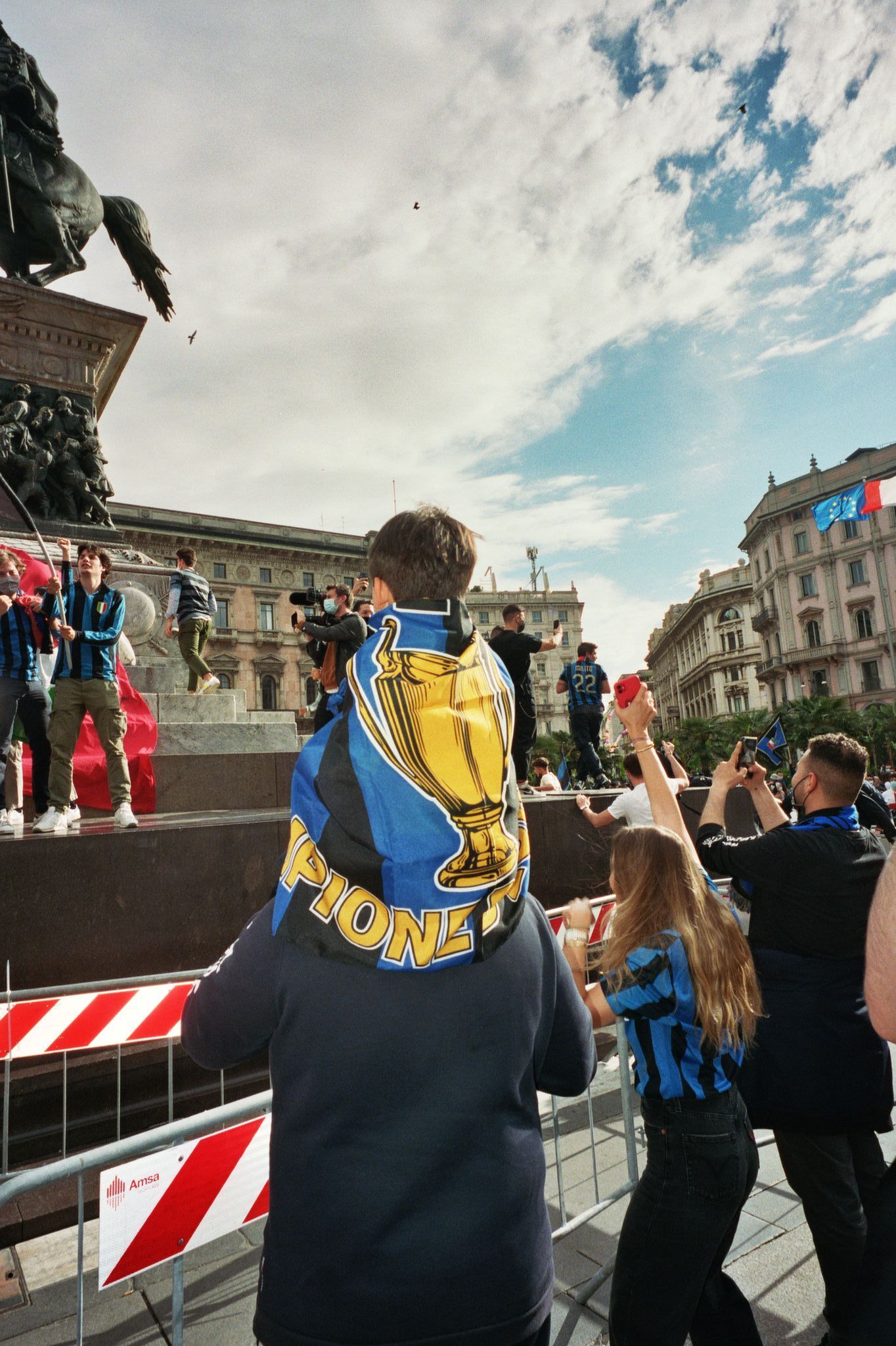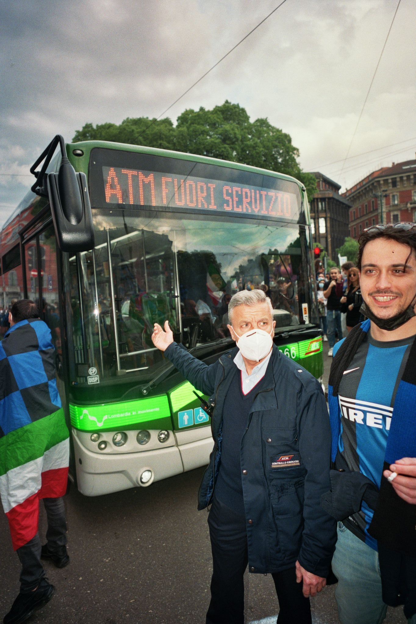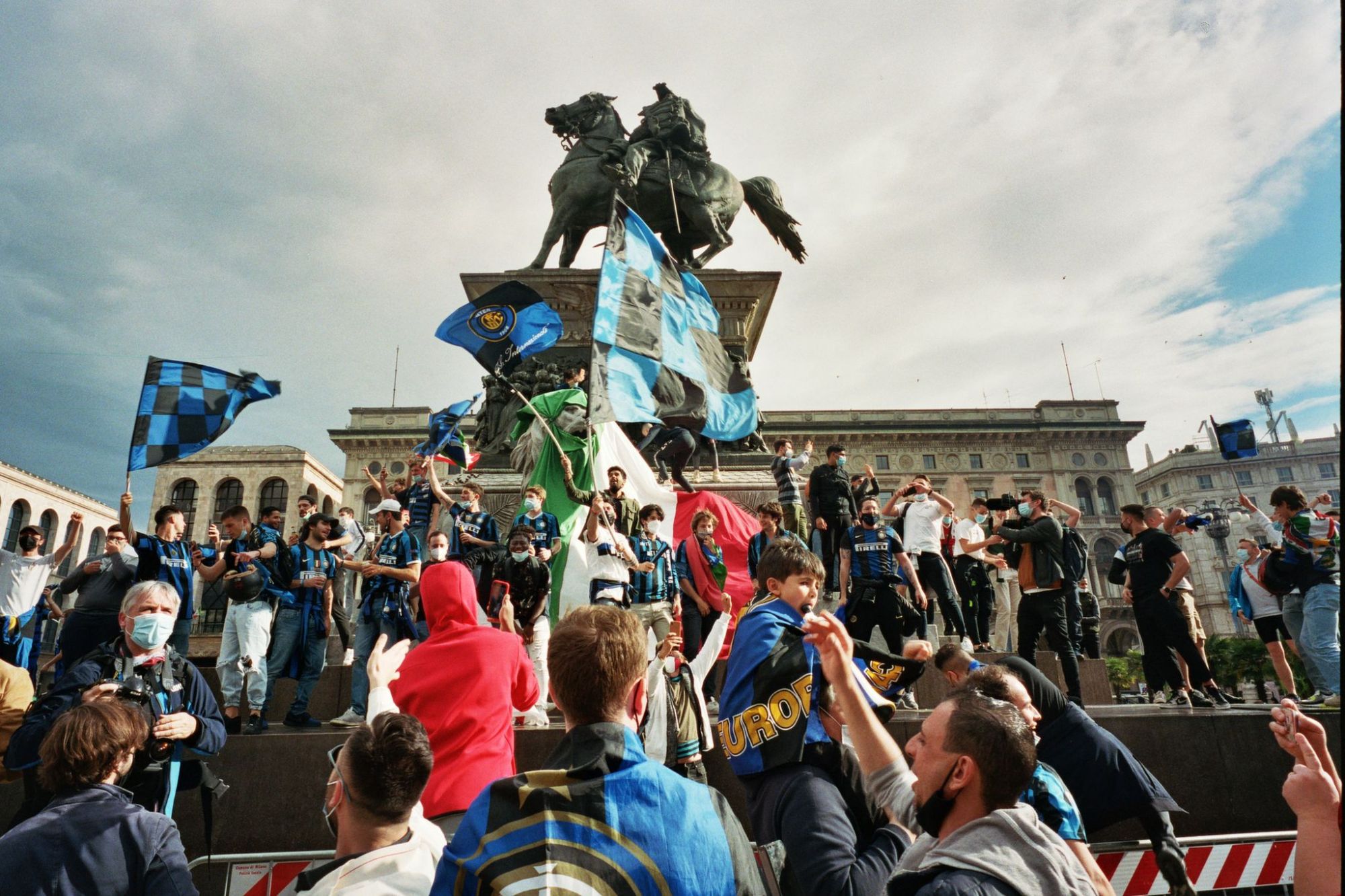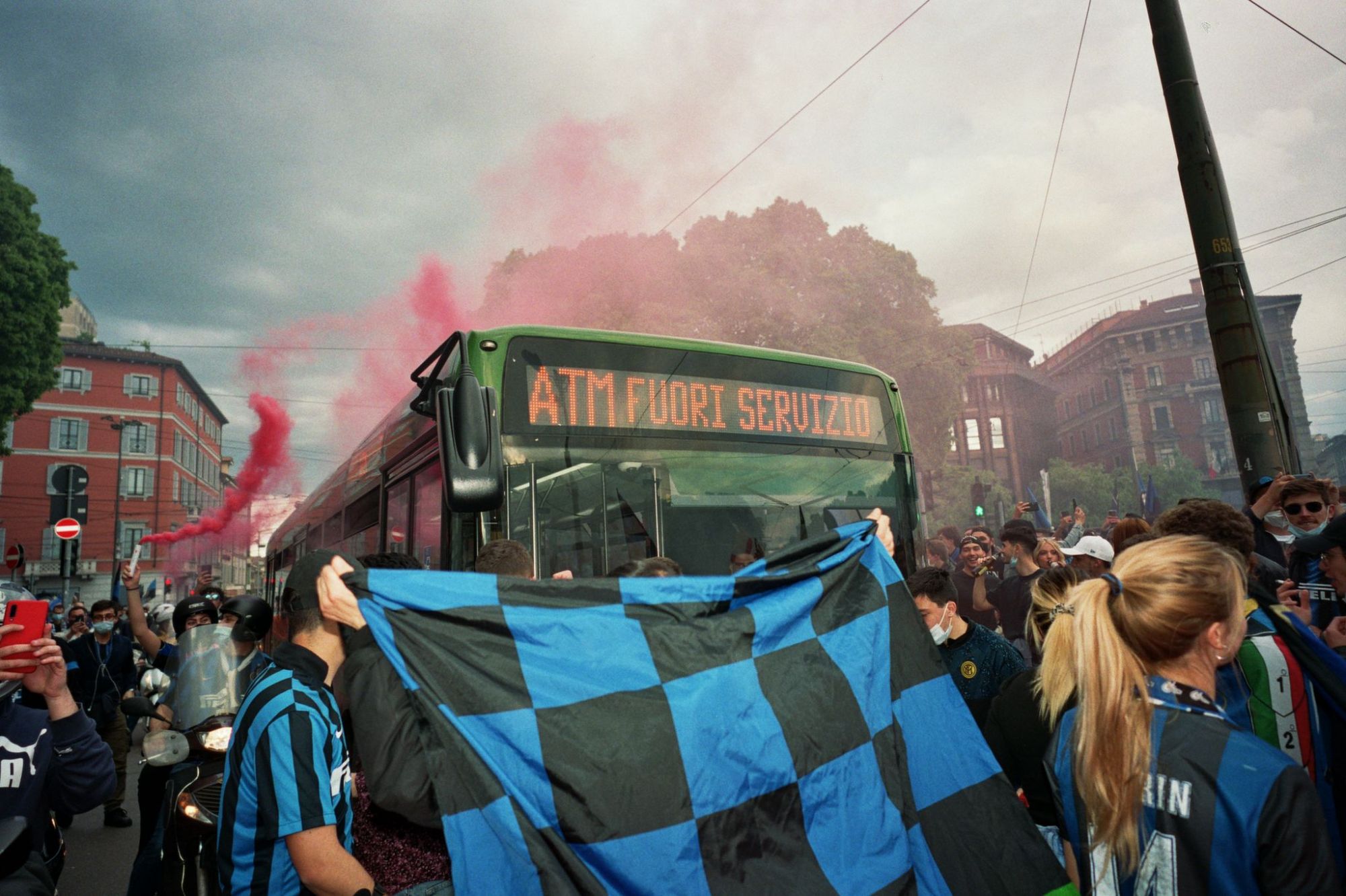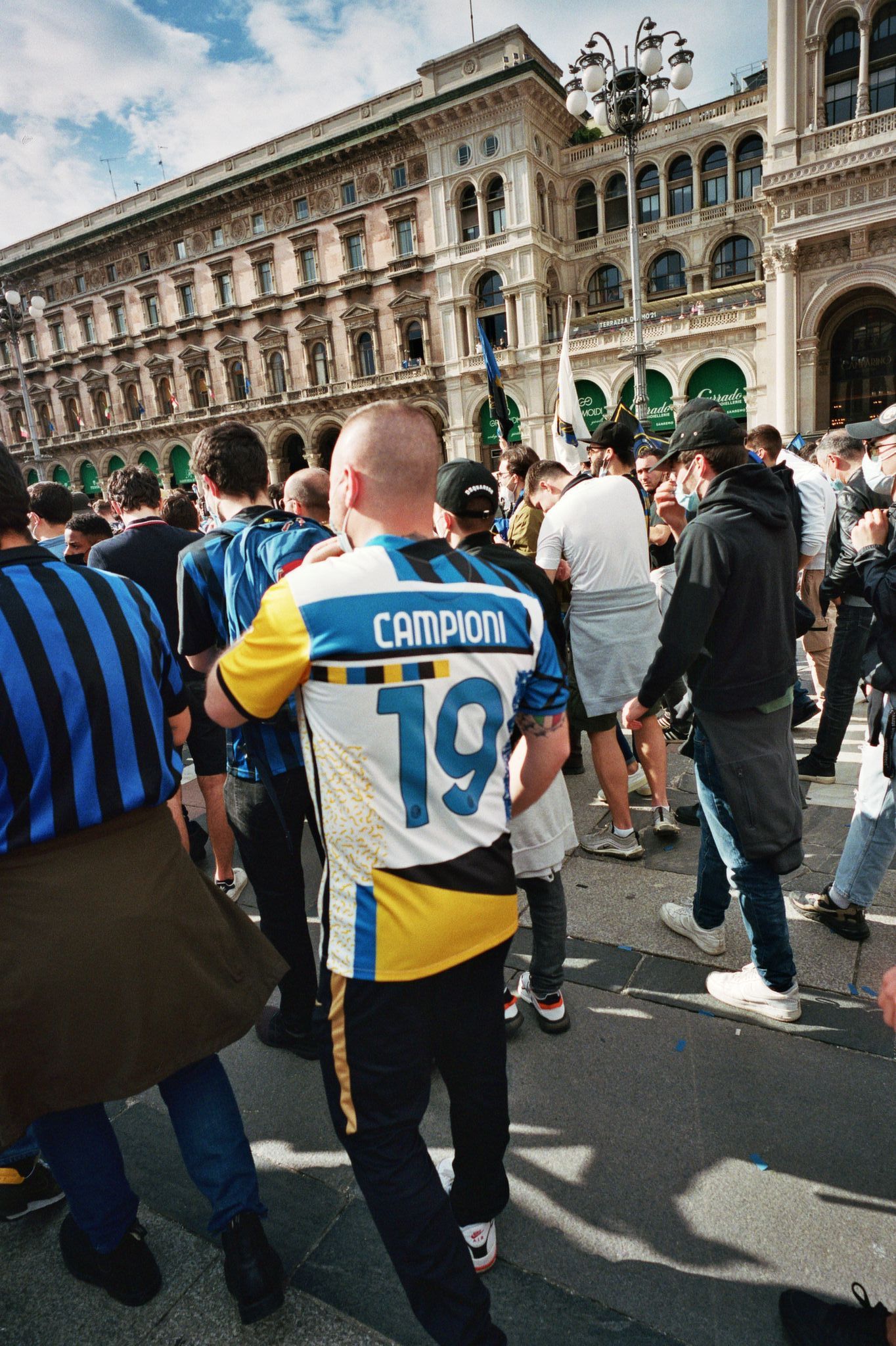 La sua è un'estetica analogica che richiama l'ironia di Martin Parr ma ambientata tra Lissone, San Siro e Stazione Centrale: questo è il suo reportage dalla festa scudetto dell'Inter.