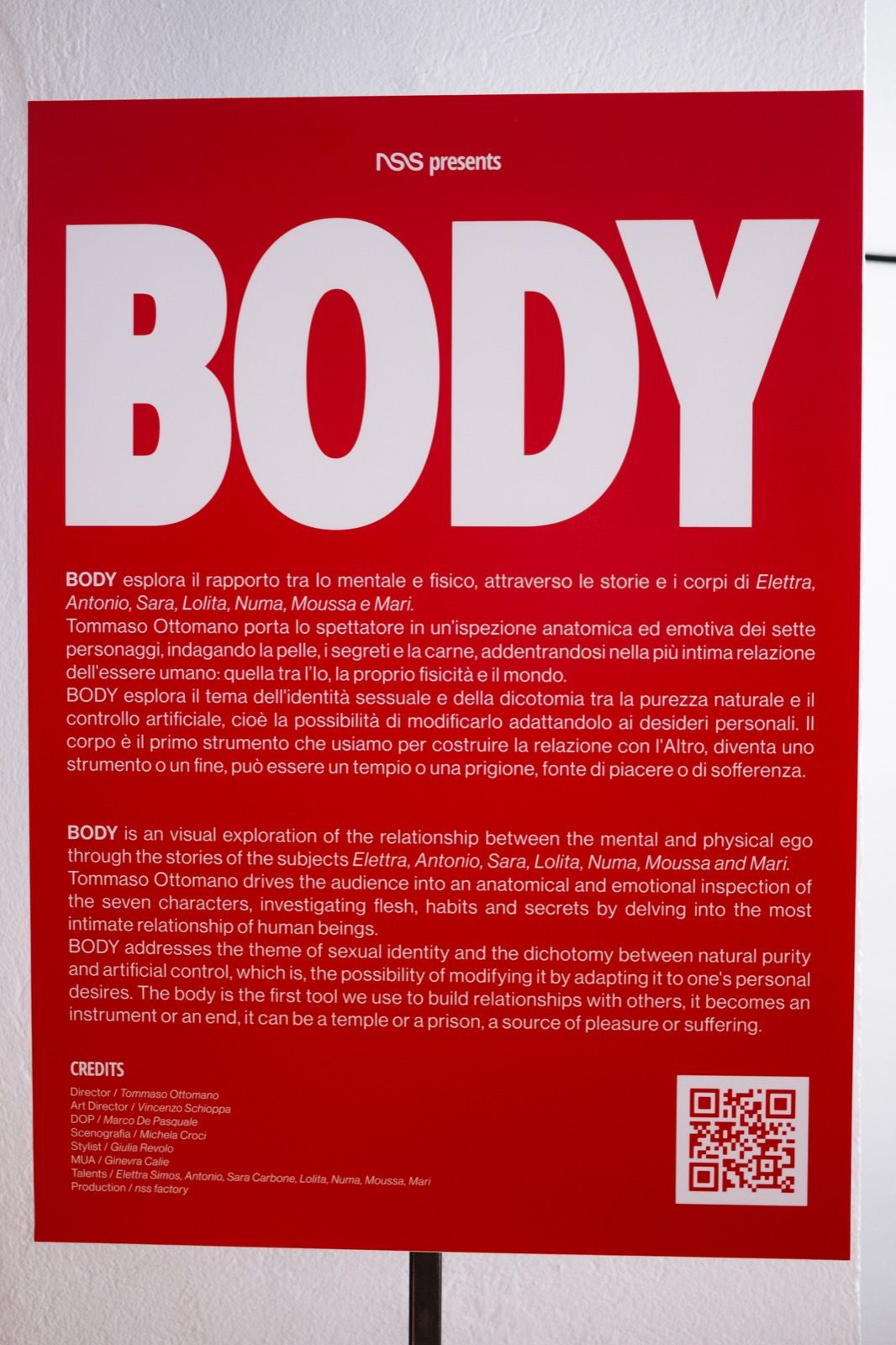Sabato 26 giugno tra i vicoli del centro di Brescia, Palazzo Monti ha aperto i suoi spazi al pubblico per Pazzo Palazzo 2.0, una rassegna di arte contemporanea che tra le varie opere ha ospitato anche BODY, il film scritto e diretto da Tommaso Ottomano per la Digital Cover N05 di nss magazine. L'installazione ha permesso al pubblico di guardare per la prima volta BODY proiettato con l'aggiunta di footage aggiuntivi e dietro le quinte dal set. BODY rimarrà disponibile al pubblico di Palazzo Monti fino al 26 luglio.