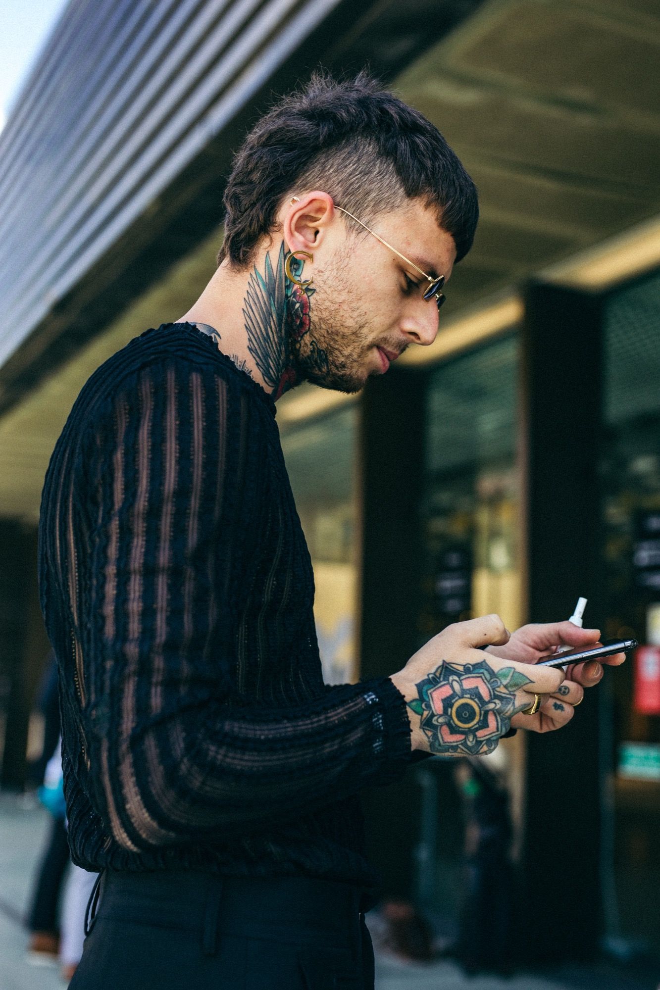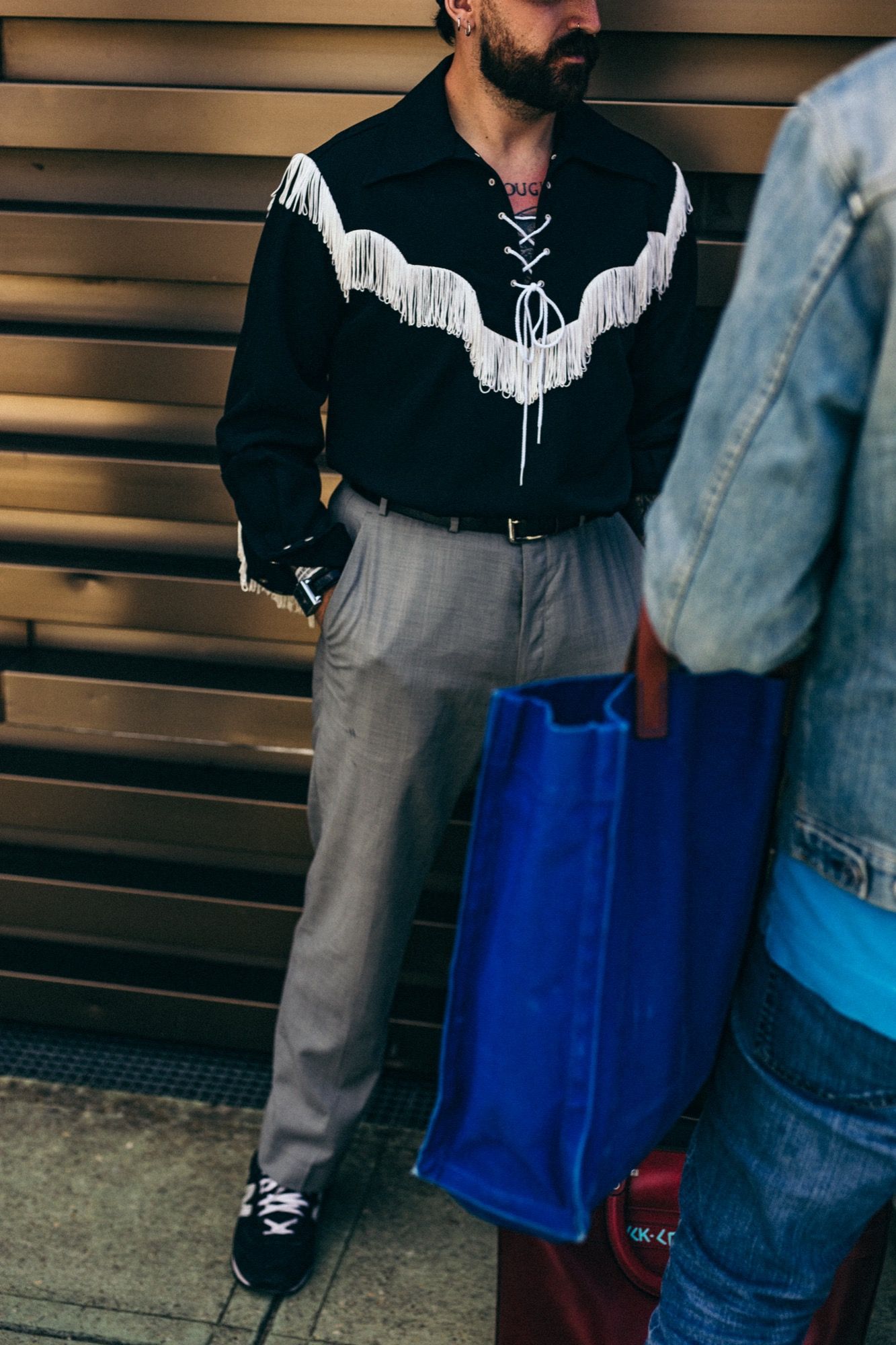 C'è una certa nuova mascolinità a dominare lo street style di Firenze, fotografato per nss magazine da Jeremy Alvarez, un'evoluzione scandita da camicie see-through, vest in maglia portati a pelle, top in mesh dal sapore berlinese. A Pitti Uomo nulla è scontato, nulla è banale, e il mondo del menswear può ripartire da qui per immaginare il suo domani.