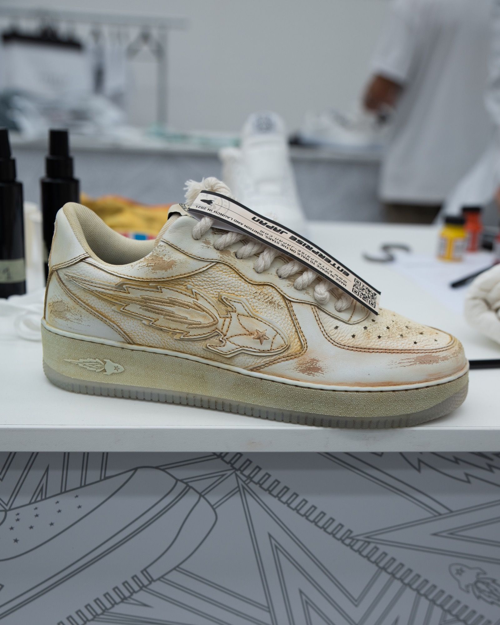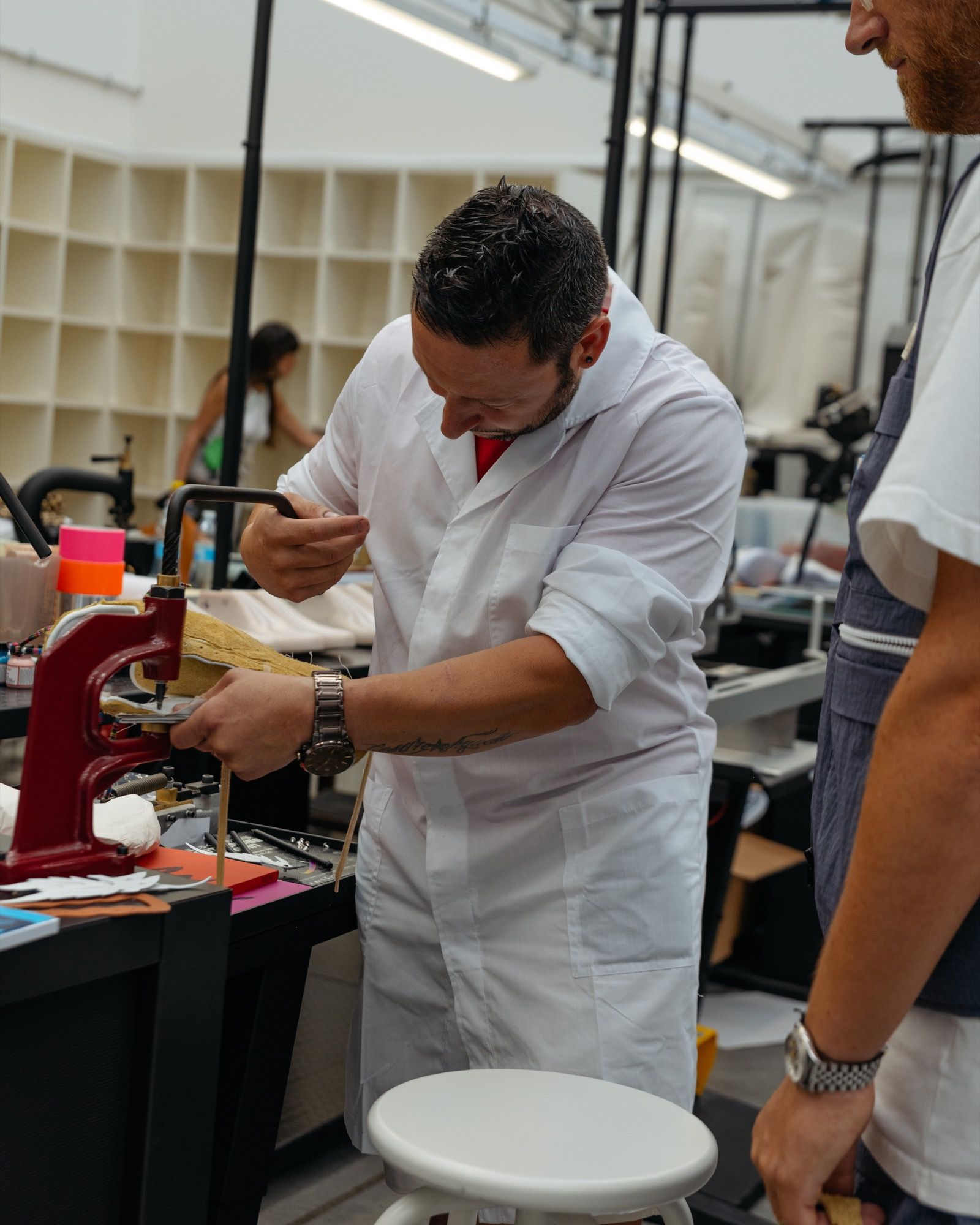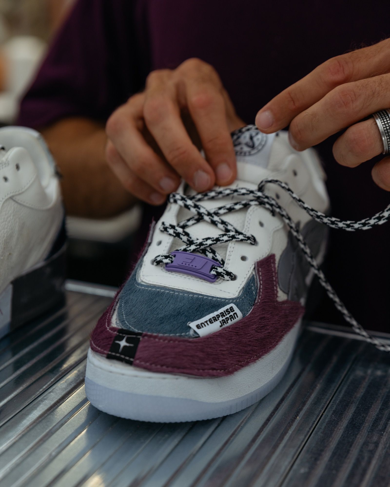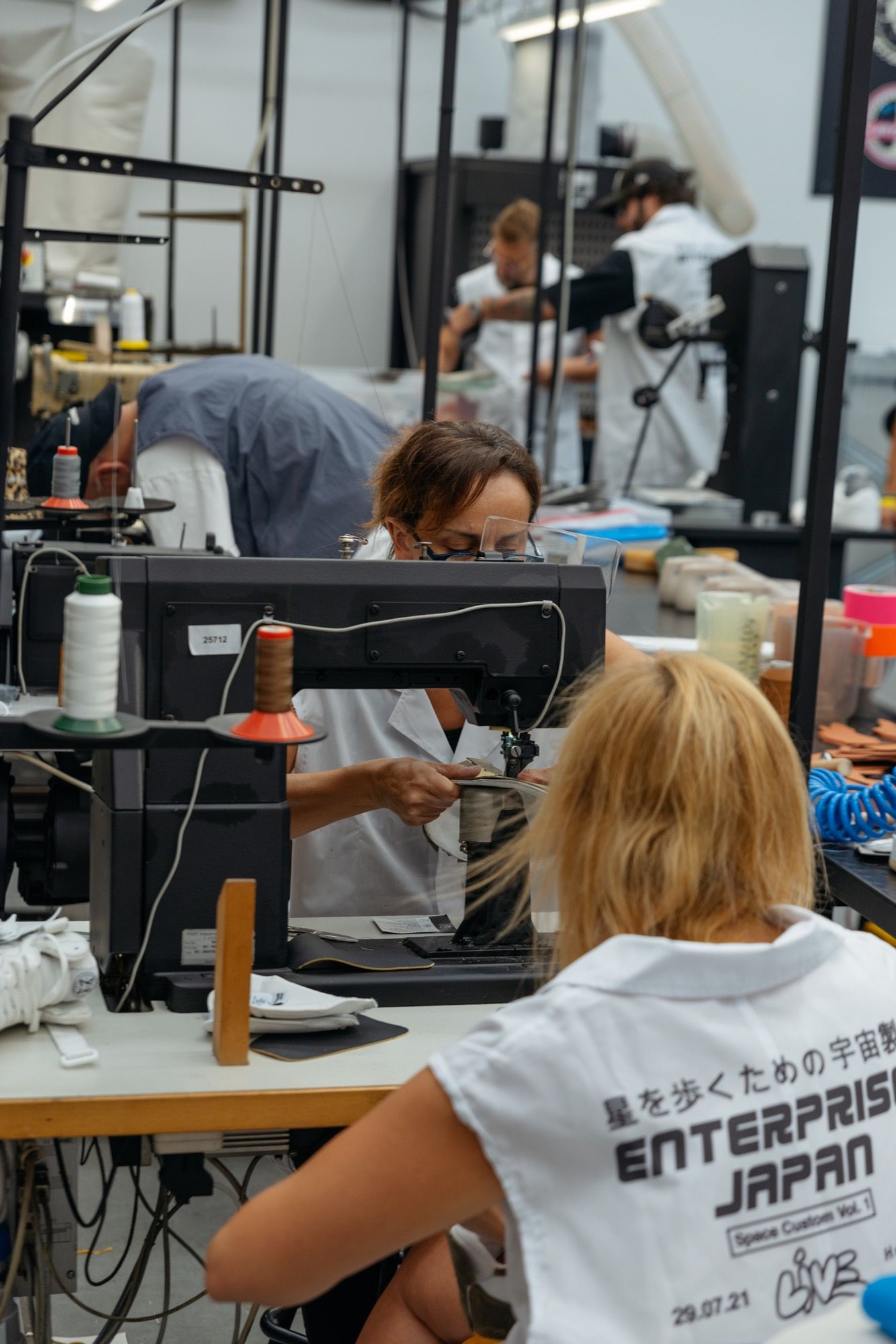 Era questa la domanda che faceva da apripista al workshop organizzato da Enterprise Japan lo scorso 29 luglio in cui, designer professionisti e non, hanno potuto mettere le mani su tutti gli strumenti necessari per creare una scarpa non limitandosi alla sola teoria, ma passando direttamente alla pratica. Da Domenico Formichetti a Leonardo Colacicco di LC23, da collettivo RAL7000 Studio a Jacopo de Carli e APJP, gli ospiti di Enterpise Japan si sono sporcati le mani tra tomaie, suole e lacci per creare in prima persona modelli one-off che saranno poi resi disponibili per il pubblico attraverso l’e-commerce del sito di Locker Room Hub.