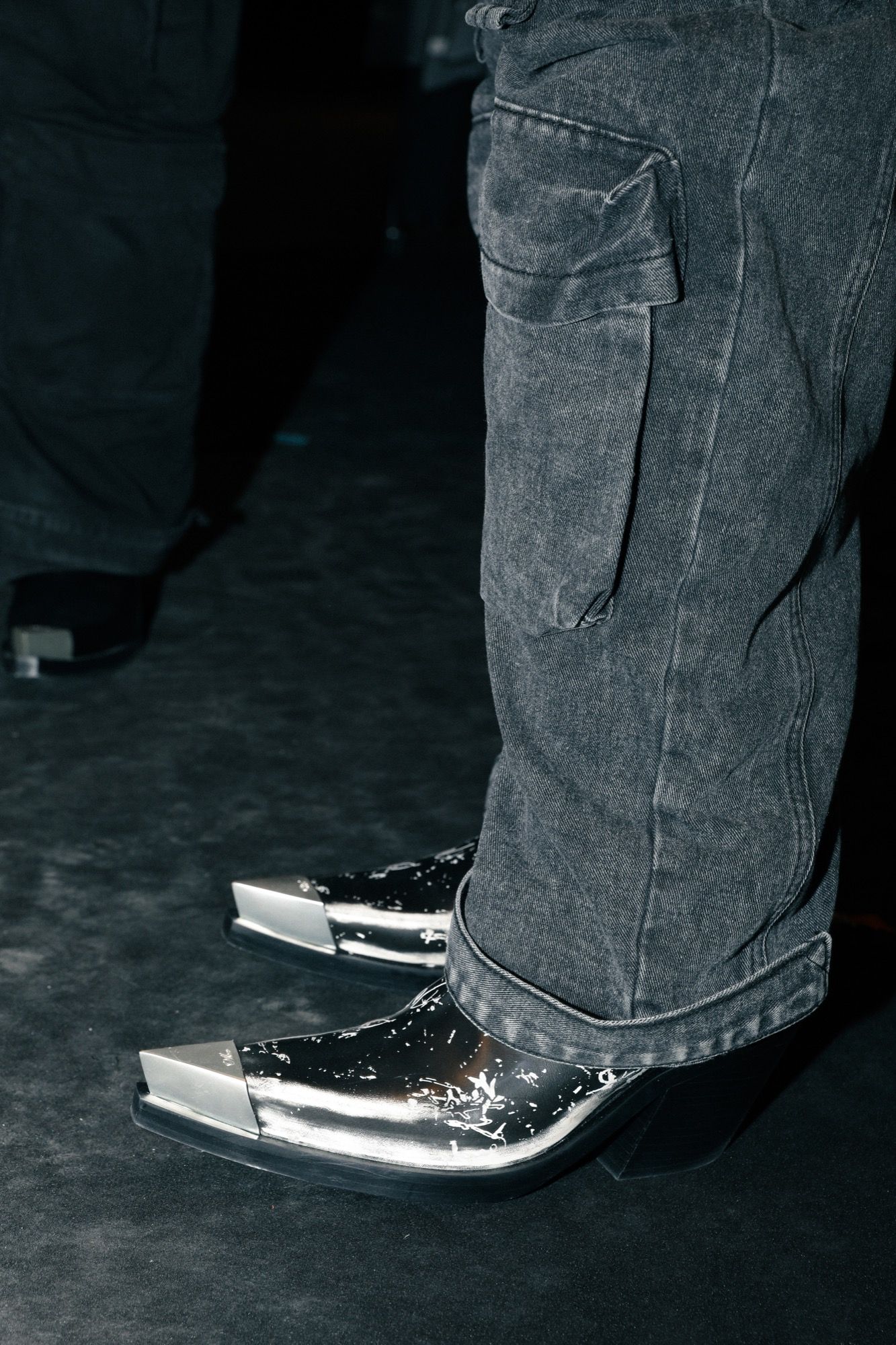 Cinte borchiate, denim lavorati in maniera minuziosa e capi in pelle di pregiata qualità accostati a un'ampia selezione di item genderless, come top in pizzo con effetto distressed e lunghi vestiti che hanno spiccato di fronte a un pubblico ammaliato, seguiti da interi look impreziositi da stivali texani e abiti da "cowboy contemporaneo". Siamo stati nel backstage della prima sfilata ready-to-wear di Achilles Ion Gabriel, designer finlandese che ha scelto lo scenario del Pitti Uomo di Firenze come location d'esordio. Il direttore creativo di CAMPERLAB ha dato vita a una collezione personalissima che richiama il suo retaggio culturale e, di conseguenza, il suo riconoscibile stile. Achilles Ion Gabriel ha incentrato più degli ultimi 10 anni della sua carriera sul settore del footwear: prima ancora di approdare da CAMPERLAB, Achilles ha guadagnato non poca esperienza nelle vesti di consulente per marchi come Marni e Sunnei, ma la volontà di mettersi in proprio offrendo la sua visione a 360 gradi ha avuto la meglio. La collezione AW24 è ricoperta da un'aura di magia, è il preludio del futuro splendente di un astro nascente - e già consacrato - del "nuovo" fashion system.