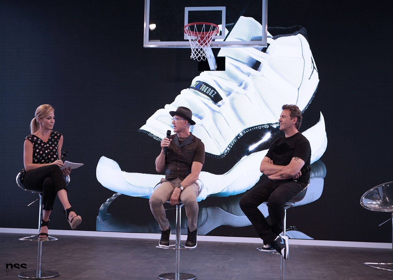 Io inizio a scalpitare, scatto qualche foto, posto freneticamente sui social. Ha inizio la conferenza, presidiata da una giornalista statunitense ma aperta da Larry Miller, attuale presidente di Jordan brand. Pochi minuti e sul palco arrivano Mark Smith, creative director di progetti speciali e nuove tecnologie di Nike e Tinker Hatfield, guru delle sneakers e creatore delle AirMax.