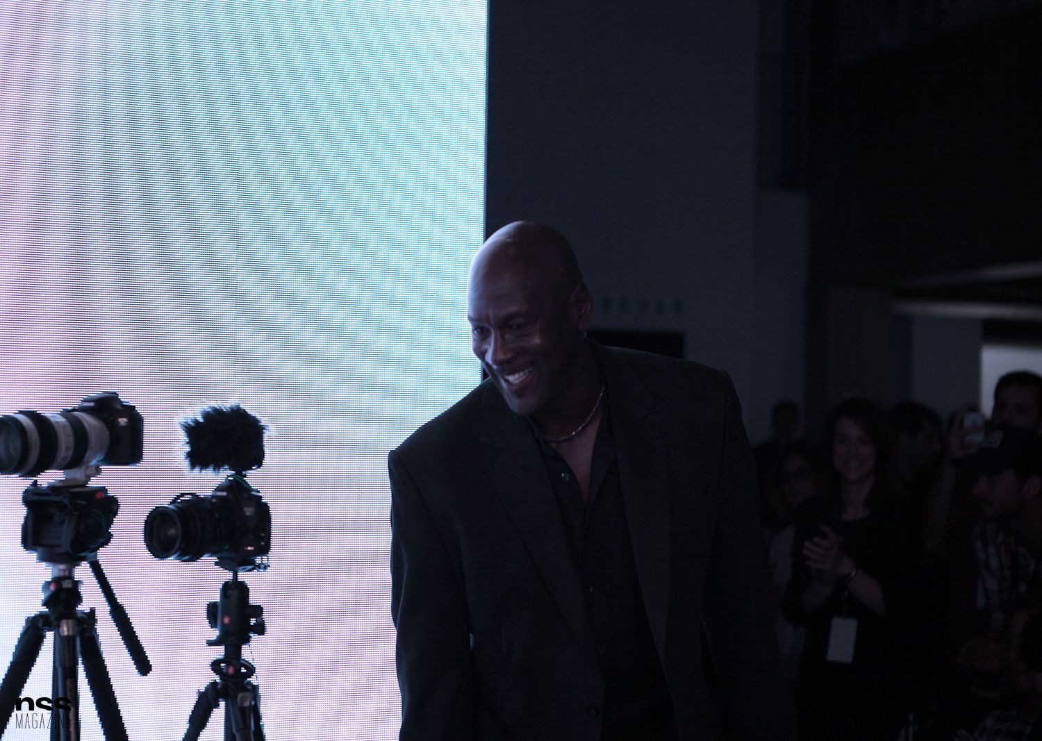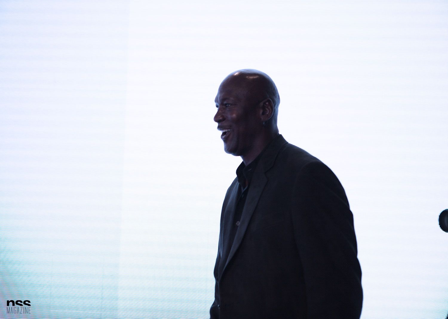 Finalmente arriva il momento tanto atteso: Michael Jordan in persona fa il suo ingresso in sala con la sua presenza imponente ed il suo sorriso contagioso, sprigiona energia ai pochi e fortunati presenti, inizia la sua conferenza.