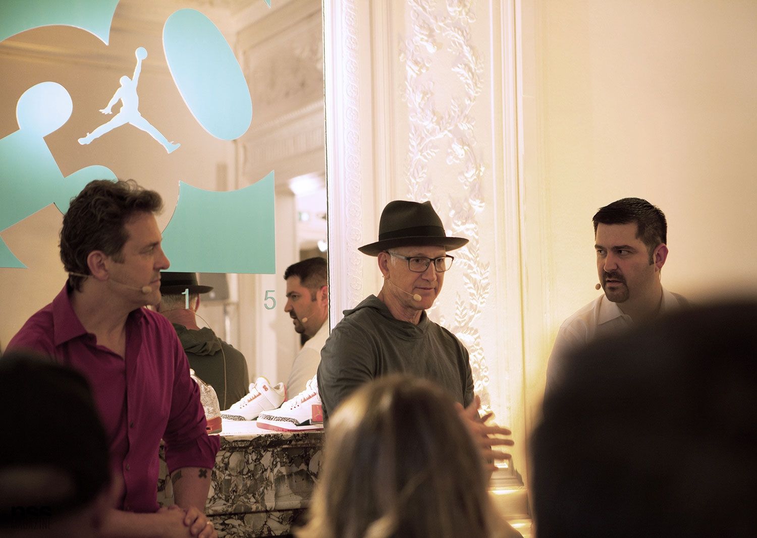 Dopo la registrazione del video, ci attende una conferenza privata allo showroom Nike dove ritroviamo Tinker e Mark che ci parlano della Jordan XXX, ma la sorpresa grande è ritrovare ancora una volta Michael Jordan. Tra gli aneddoti che i tre snocciolano, il più divertente è sicuramente la storia dello spot girato nel periodo natalizio che sponsorizzava la Jordan I e vedeva Michael in un 1 vs 1 con Santa Klaus in persona.
