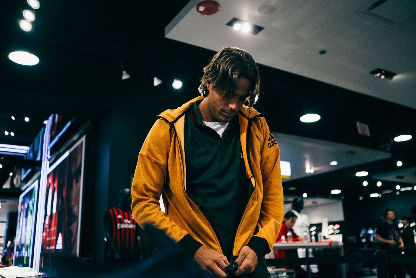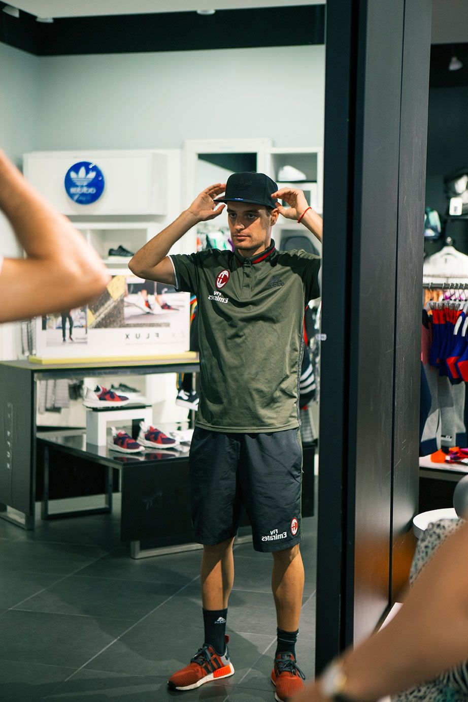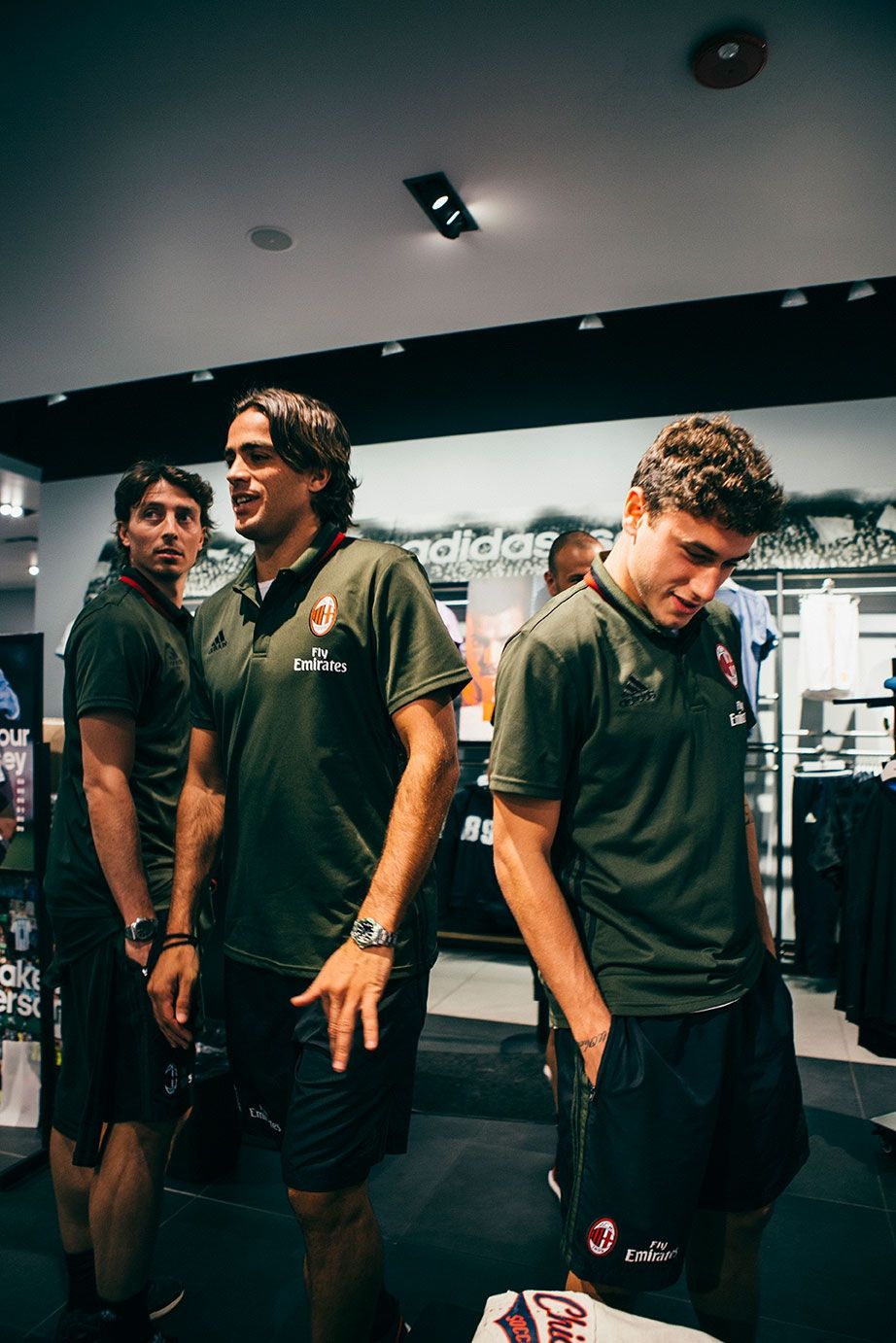 Il terzo giorno è la volta dell’evento in store di adidas, un meet and greet con alcuni giocatori del Milan, che hanno potuto beneficiare di un’ora di shopping e poi firme su maglie, palloni, foto e bandiere. Quello che ha preso più articoli è il Capitano Montolivo, mentre Jack Bonaventura ha scelto dei nuovi prodotti da Basket e un cappello Skateboarding veramente figo, mentre Calabria, Matri e Antonelli si lanciano su prodotti Originals e Poli sulle nuove Ultraboost Uncaged black.