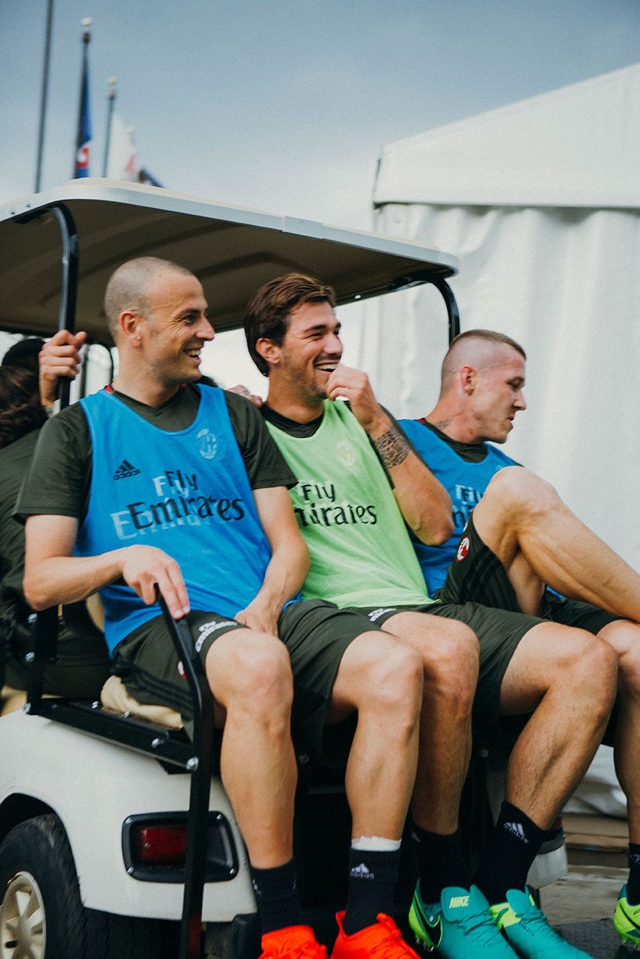 Il campo non è granché, l’erba non è perfetta, ma lo stadio è da brividi, quello delle grandi occasioni e infatti si preannuncia il tutto esaurito, per il match del giorno seguente. Alcuni tifosi chiamano Niang, ma scambiandolo per Balotelli, lui risponde “Ehy ma sono più bello non vedi?”, in tanti invece fanno il nome di Honda, non è un caso che quelle del Giapponese siano le maglie più vendute in assoluto della squadra. Lo staff è sul campo, Milan lab è pronto, ma fa il suo arrivo anche una leggenda del nostro Calcio Italiano: il capitano per eccellenza dei rossoneri Franco Baresi, che celebra con delle foto di rito la sua presenza vicino a dei dirigenti dello sponsor Audi. La sessione inizia, Magni è con i portieri, Montella e Nicola Caccia con il resto del gruppo, questa volta c’è tanta palla in giro e mentre Gigio e Lopez sventano palle alte i ragazzi al centro del campo si allenano sul possesso palla a un solo tocco.