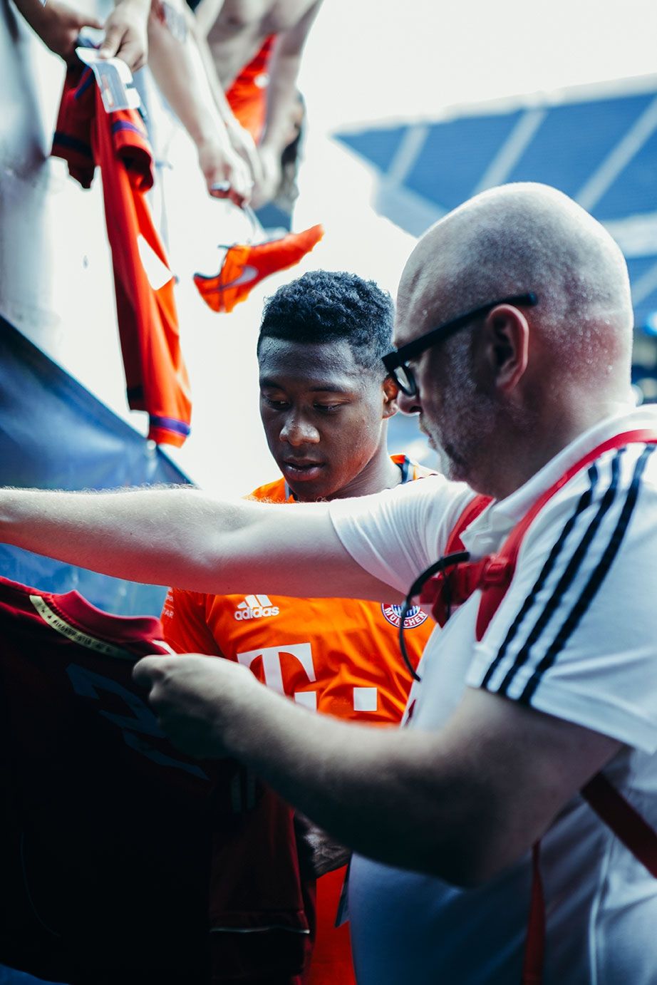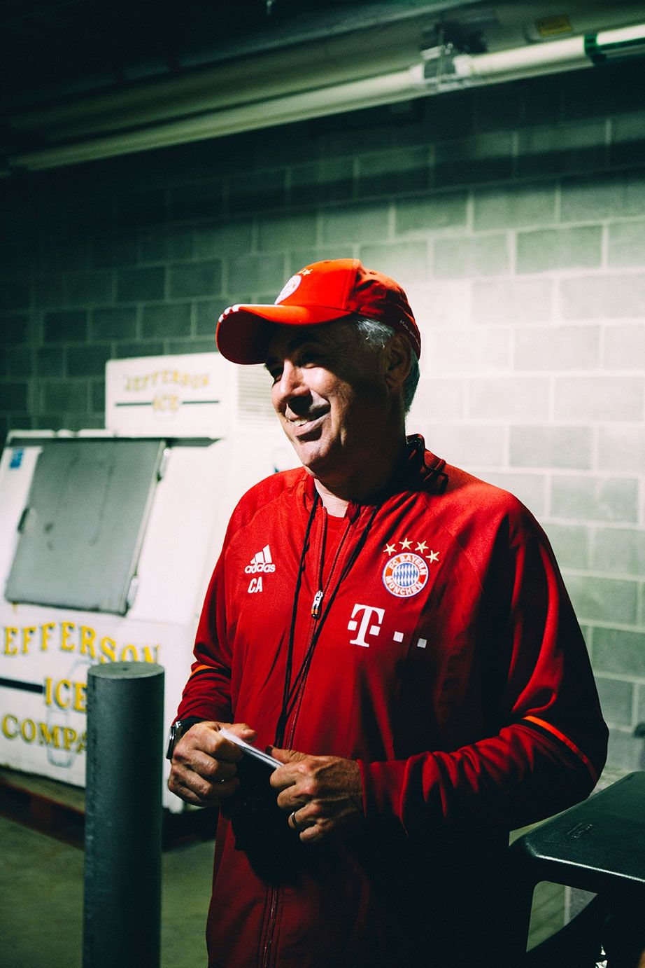 Il quarto giorno è stato uno dei più emozionanti per me: la squadra si è allenata allo stadio dove c’era anche la squadra del Bayern Monaco, avversaria del primo match di questa tournée. Dopo gli autografi fuori dall’Hotel, un bel gruppo di tifosi milanisti hanno avuto la fortuna di avvicinare i loro beniamini. Arriviamo allo stadio e nel sottopassaggio della struttura tanti media intervistano la squadra che sta uscendo dal campo per lasciare il posto al Milan. Ecco che qui intravedo gente come, Alaba, Vidal, Xabi Alonso, Ribery e il mio mitico ex allenatore, nonché l’unico che mi ha regalato le emozioni più forti di sempre: Mister Carletto Ancelotti.