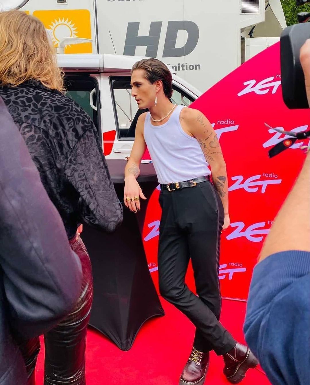 Se le scarpe sono sempre più o meno stivaletti neri, non possono certo mancare in nessun repertorio da rocker né le Doc Martens né le Vans di tela leopardata. Il vero segreto però qui sono gli accessori e i gioielli: Damiano si fa vedere spesso con fedora ma anche con una gran varietà di gioielli che includono orecchini, collane e anelli. Un tratto a cui ispirarsi, ma sempre ricordandosi che il bello di certi gioielli sta nel loro accumulo e che il mood deve essere sempre fra l’esotico e l’aggressivo: perle e teschi, ad esempio, è un abbinamento tanto stridente quanto perfetto.